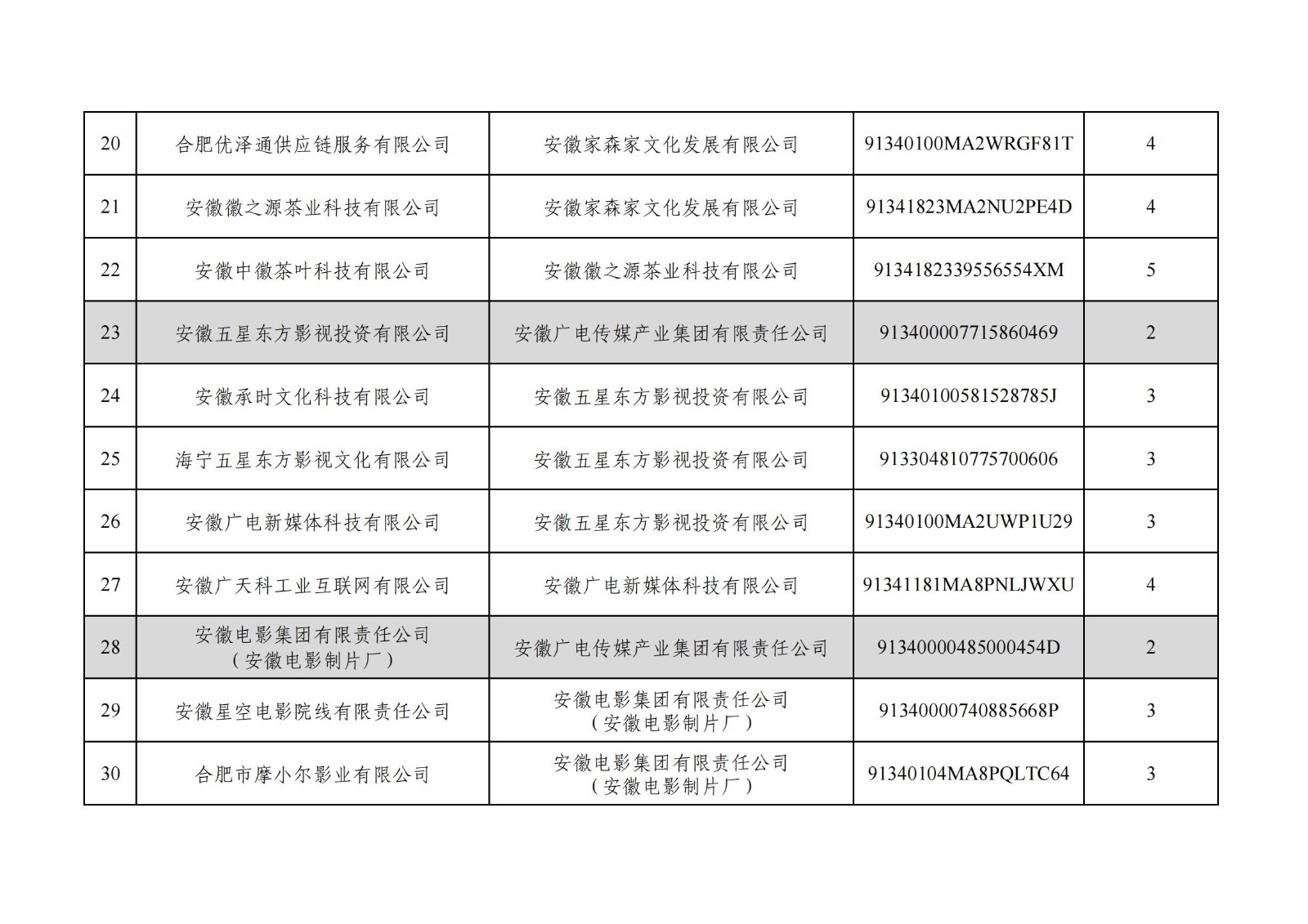 太阳集团传媒产业集团有限责任公司全级次企业名单