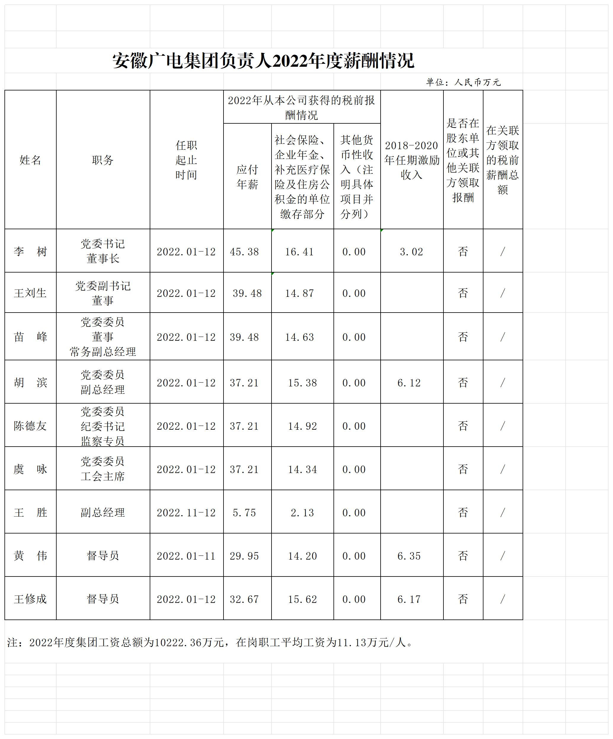 太阳集团集团负责人2022年度薪酬情况