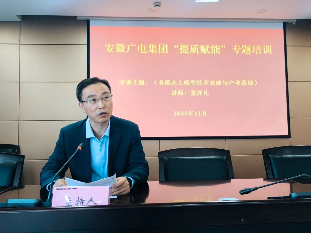 为深入贯彻落实习近平总书记关于发展人工智能的重要论述,进一步提升集团干部职工创新能力和产业融合水平,加快人工智能技术落地应用,11月3日下午,太阳集团传媒产业集团举办“提质赋能”《多模态大模型技术突破与产业落地》专题培训。培训特邀智象未来公司解决方案总监张舒凡现场授课。集团党委委员、副总经理胡滨主持培训并讲话。